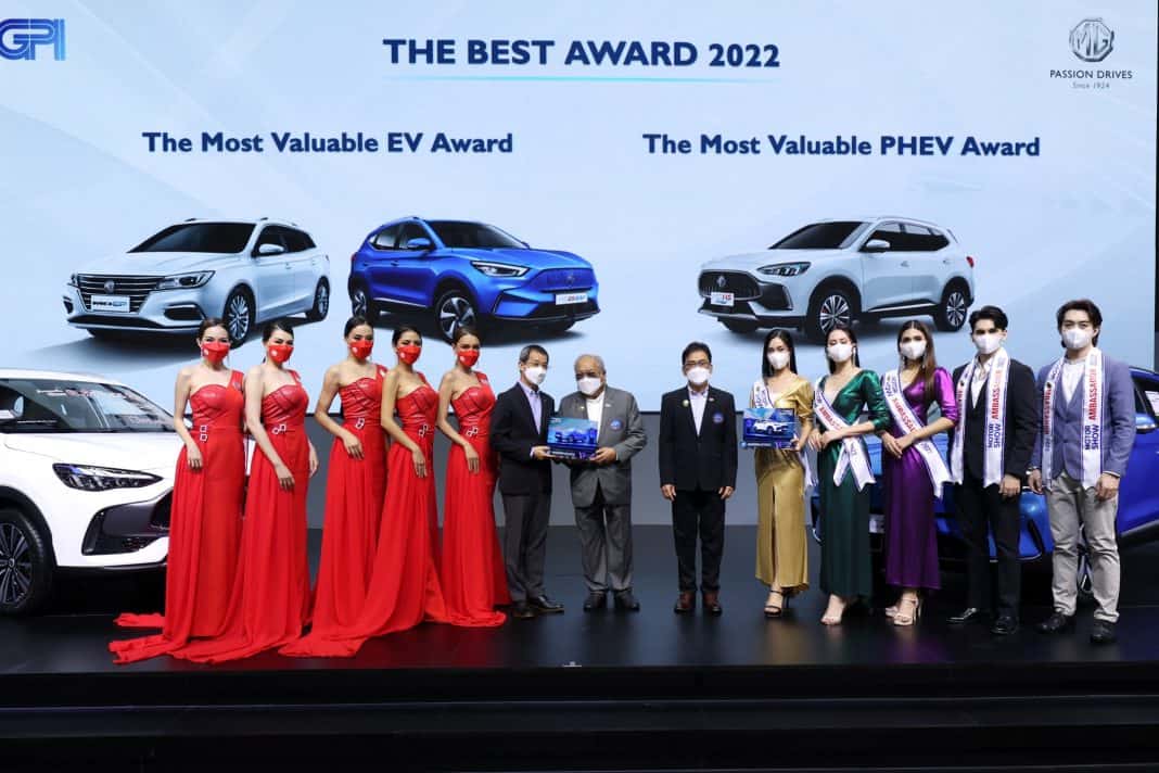 - Most Valuable EV รางวัลรถยนต์พลังงานไฟฟ้าที่คุ้มค่าที่สุด จากการแนะนำรถยนต์พลังงานไฟฟ้า New MG ZS EV และ MG EP ที่มาพร้อมความโดดเด่นของรถยนต์พลังงานไฟฟ้า ให้ความคุ้มค่าในราคาที่เป็นเจ้าของได้ โดยเป็นรุ่นที่ได้รับความสนใจจากผู้เข้าชมงานเป็นอย่างมาก มียอดจองในงานแล้วกว่า 1,000 คัน ซึ่งเป็นยอดจองสูงสุดในกลุ่มรถยนต์พลังงานไฟฟ้า