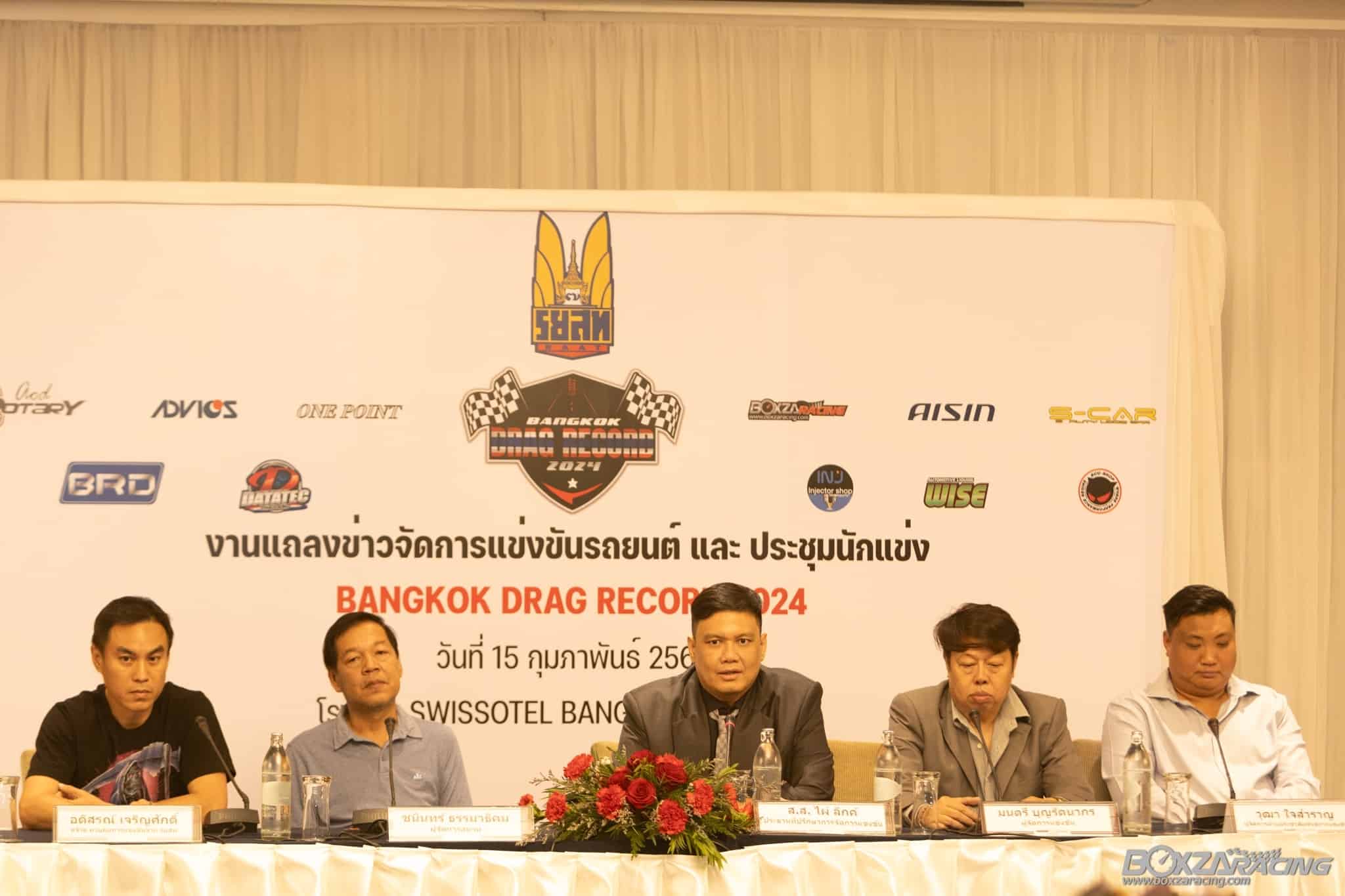 คุณมนตรี บุญรัตนากร จับมือกับ คุณวุฒา ใจสำราญ ผู้บริหารเว็บไซต์ Boxzaracing.com พร้อมด้วย ส.ส.ไผ่ ลิกค์ ประธานที่ปรึกษาการจัดงาน ร่วมแถลงข่าวงานแข่งรายการ “Bangkok Drag Record 2024” รายการแข่งรถยนต์ทางตรงระยะ 402 เมตร ตามมาตรฐานของการแข่งขันรถยนต์ ชิงแชมป์ประเทศไทยอย่างเป็นทางการ ที่ไม่จำกัดรุ่นและยี่ห้อ ซึ่งรับรองโดยราชยานยนต์ สมาคมแห่งประเทศไทยในพระบรมราชูปถัมภ์ สมาคมกีฬา (ร.ย.ส.ท.) เพื่อเฟ้นหาสถิติเร็วที่สุดในประเทศไทยประจำปี 2024 ร่วมลุ้นเงินรางวัลทุกรุ่น รวมมูลค่ากว่า 2 ล้านบาท