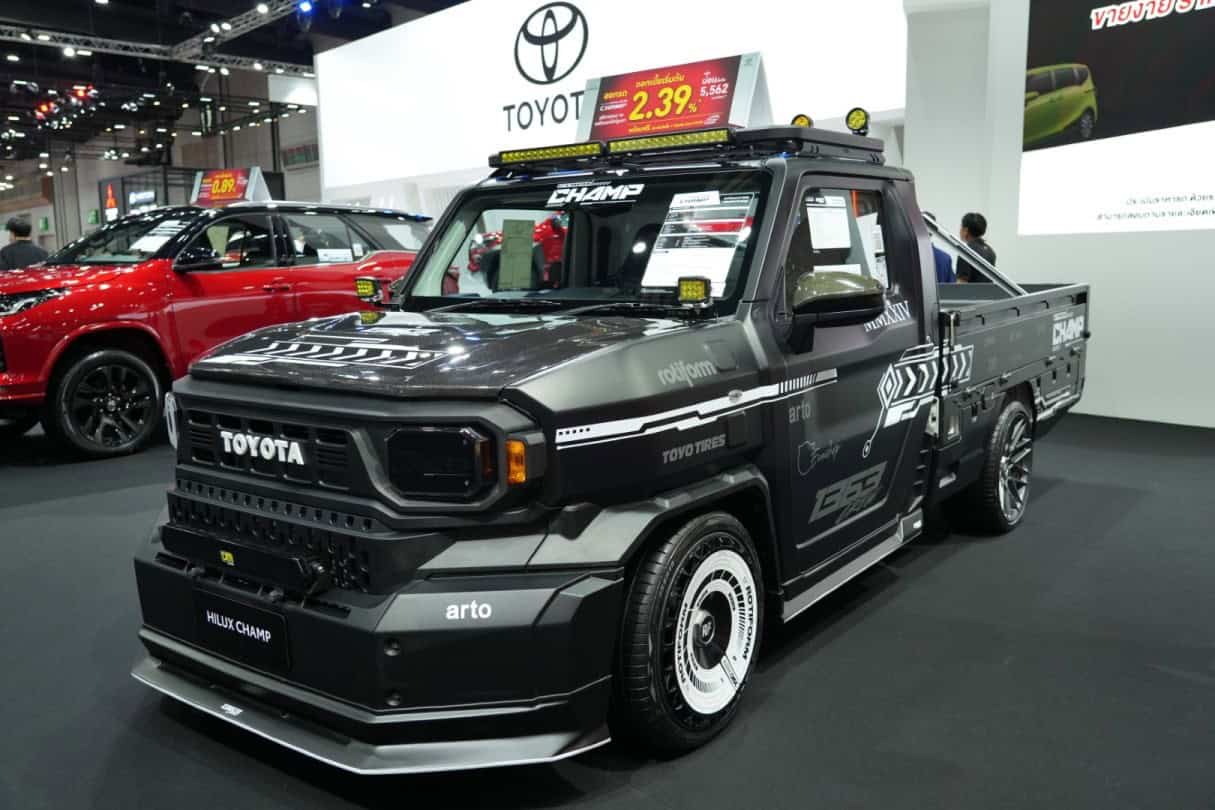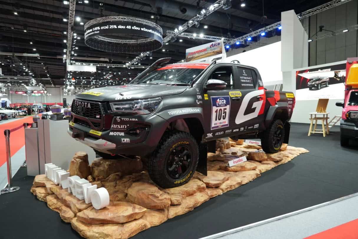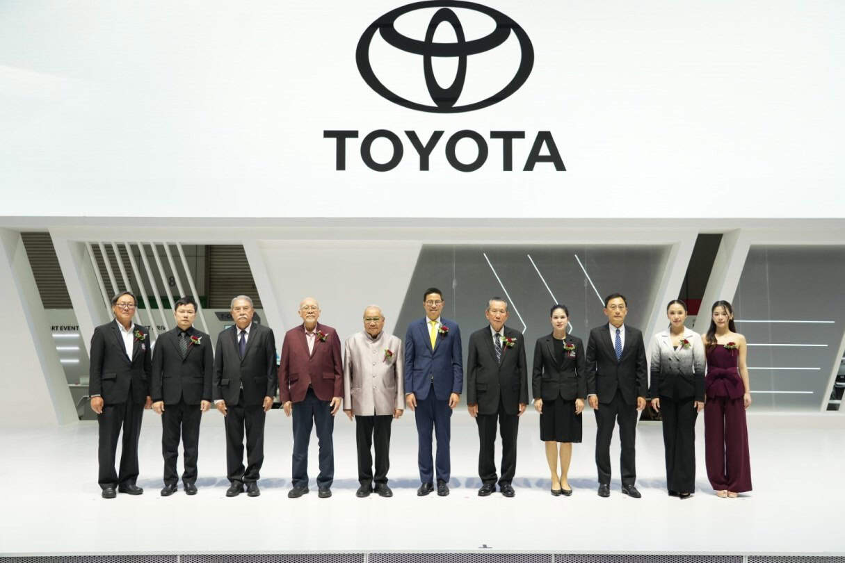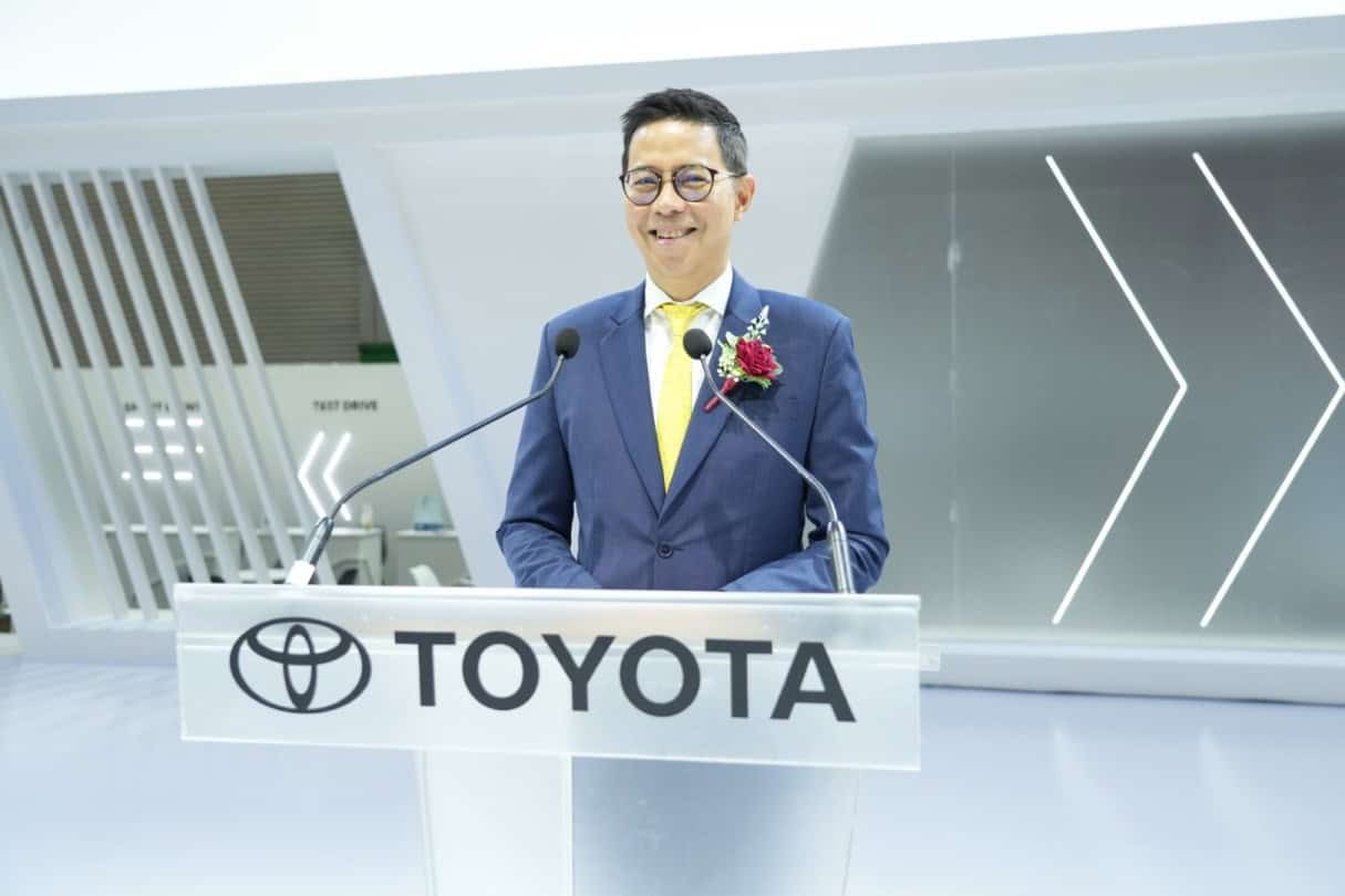 “และเรายังมีรถยนต์ยอดนิยมอีกหลายรุ่น ทั้ง Yaris ATIV, Yaris Hatchback และ Fortuner อีกทั้ง ยังมีรถยนต์อเนกประสงค์ 7 ที่นั่ง ที่สุดของเพื่อนคู่ใจสายครอบครัวระดับพรีเมียม INNOVA ZENIX และ Veloz มาให้ชมภายในงานนี้ด้วย ในส่วนของรถกระบะ นำทัพโดย Hilux Revo รุ่นปรับปรุงใหม่ ปี 2024 เริ่มจาก Hilux Revo GR-Sport 4×4 กระบะรุ่นเรือธงสมรรถนะเหนือชั้น ที่ผ่านบทพิสูจน์บนเส้นทางสุดทรหดในประเทศออสเตรเลีย และสามารถคว้าชัยชนะจากการแข่งขันสุดโหดในรายการ Asia Cross Country ที่เพิ่งจบไปเมื่อวันที่ 17 สิงหาคมที่ผ่านมา รุ่นต่อมาคือ Hilux Revo-D Prerunner และ Hilux Revo Smart Cab Prerunner ที่โดดเด่นด้วยช่วงล่างซับแรงกระแทกดีเยี่ยม มอบความสบายให้ทุกการเดินทาง และยังมี Hilux Revo Z-edition แต่งสนุก ถูกใจสายแต่งรถแน่นอนครับ สำหรับผู้ประกอบการต่างๆ เราขอนำเสนอ Hilux Champ กับแพ็กเกจต่อเติมรถ สร้างธุรกิจเคลื่อนที่ในฝันได้ ครบ จบ ในที่เดียว”