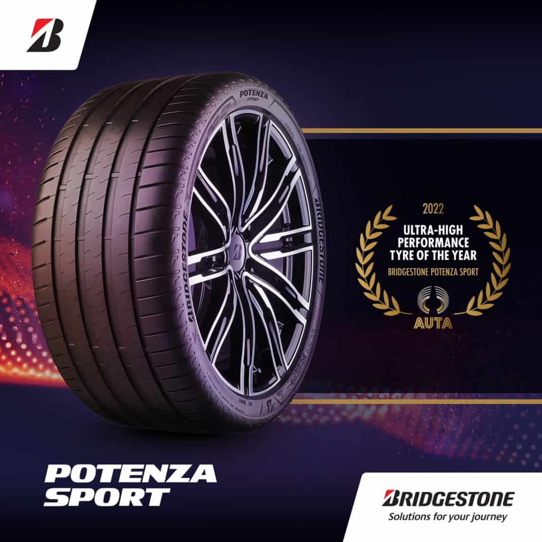 บริดจสโตนภูมิใจที่ผลิตภัณฑ์ Bridgestone Potenza Sport คว้ารางวัล Asia’s Ultimate Tyre Awards (AUTA)*1 ประจำปี 2022 ประเภท Ultra-High Performance และ Overall Tyre of the Year มาครองได้สำเร็จ จากผลการทดสอบโดย AUTA ซึ่งทำการทดสอบผลิตภัณฑ์ Bridgestone Potenza Sport กับยางรถยนต์สมรรถนะสูงยอดนิยมในธุรกิจ