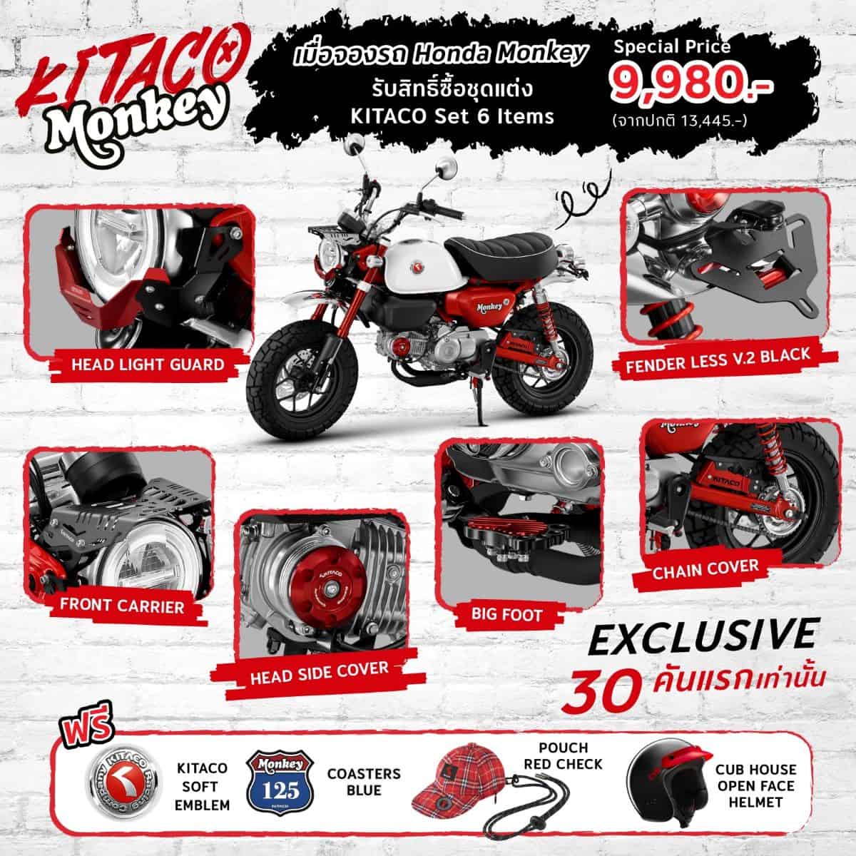 • Monkey KITACO Set ราคา 9,980 บาท จากปกติ 13,445 บาท เฉพาะ 30 คันแรกเท่านั้น