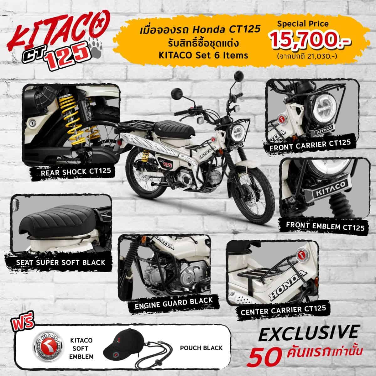 • CT125 KITACO Set ราคา 15,700 บาท จากปกติ 21,030 บาท เฉพาะ 50 คันแรกเท่านั้น