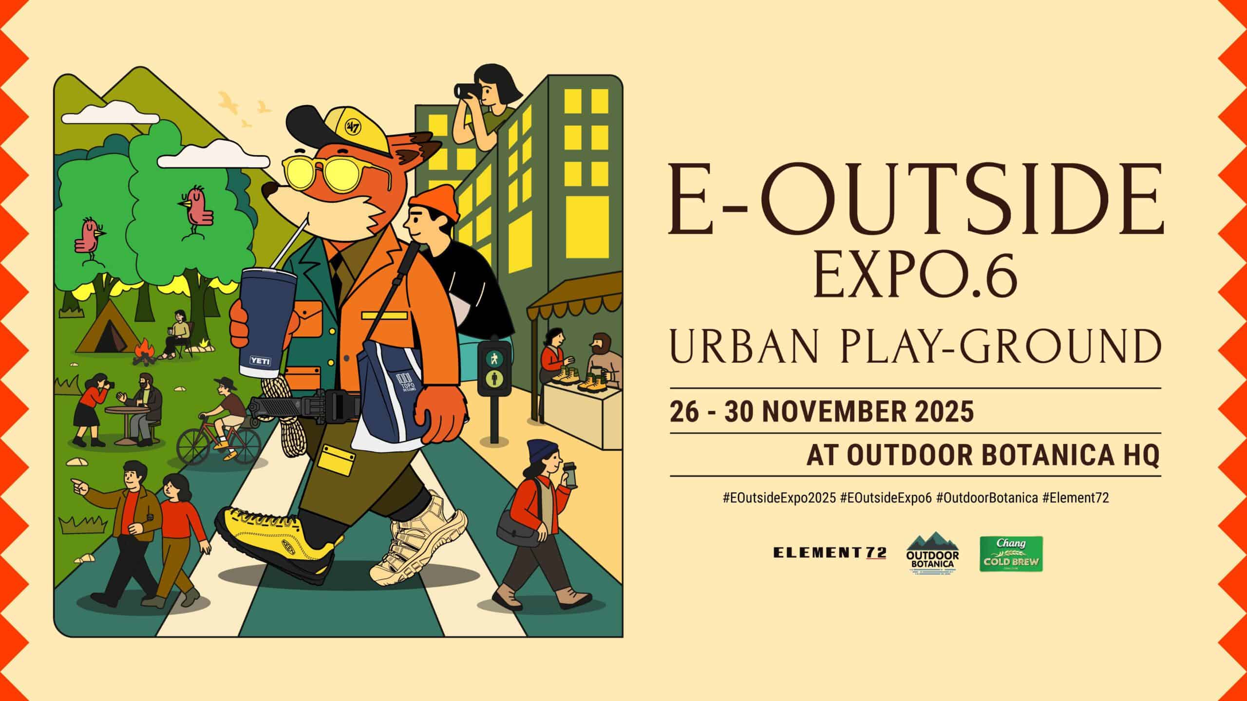 หลังจากประสบความสำเร็จตลอด 5 ปีที่ผ่านมา E-Outside Expo มีผู้เข้าร่วมงานรวมกว่า 50,000 คนภายใน 5 วัน และได้กลายเป็นจุดหมายสำคัญของคนรุ่นใหม่ที่หลงใหลการใช้ชีวิต Outdoor ในปีนี้ Element72 กลับมาอีกครั้งกับการเดินทางบทใหม่ใน E-Outside Expo.6 ภายใต้ธีม “Urban Play-Ground” ที่ชวนเปลี่ยนเมืองใหญ่ให้กลายเป็นสนามผจญภัยของคนมีสไตล์ พร้อมพาแฟชั่นสาย Urban Outdoor ให้เข้าถึงง่ายขึ้น ใส่ได้จริงในทุกวัน ตั้งแต่คาเฟ่ในเมืองจนถึงการออกทริปธรรมชาติ ให้ “การออกไปใช้ชีวิต” สนุกยิ่งกว่าเดิม
