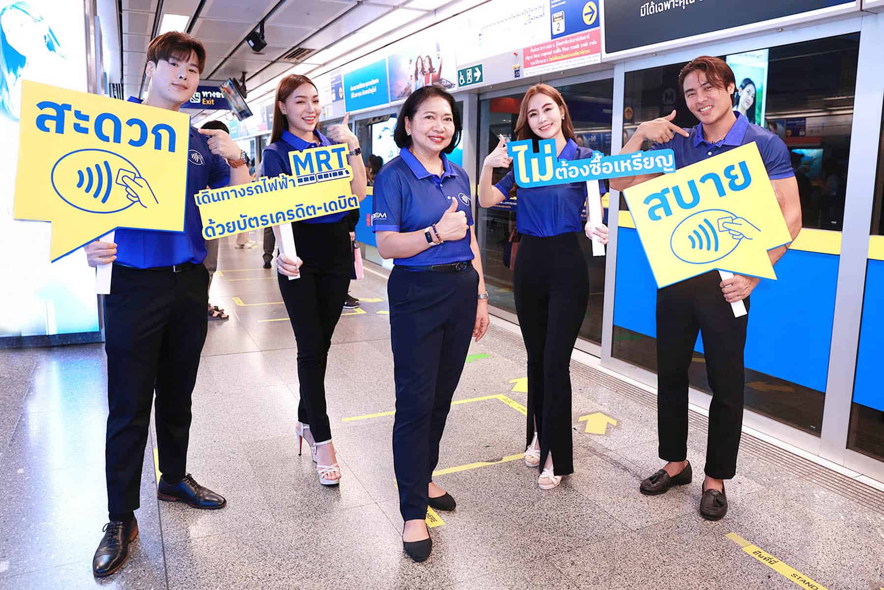 รณรงค์ผู้โดยสารรถไฟฟ้า MRT สายสีน้ำเงินและสีม่วง ชำระค่าโดยสารด้วยบัตร EMV Contactless