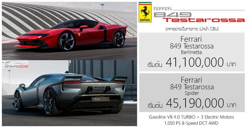 - Ferrari 849 Testarossa (Berlinetta) ราคาเริ่มต้น 41,100,000 บาท