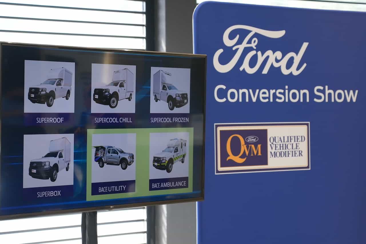 ภายในงานฟอร์ดยังได้เปิดโอกาสให้สื่อมวลชนยลโฉมรถยนต์ดัดแปลงเพื่อการพาณิชย์ที่นำมาจัดแสดงเป็นตัวอย่าง เพื่อตอกย้ำความอเนกประสงค์ของรถฟอร์ด เรนเจอร์ เจเนอเรชันใหม่ ที่โดดเด่นในแง่สมรรถนะ ความอเนกประสงค์ ครบครันด้วยเทคโนโลยีทันสมัยและอุปกรณ์ด้านความปลอดภัย ตั้งแต่รุ่นเริ่มต้น อาทิ ช่วงล่างที่มีการปรับใหม่มีขนาดกว้างและยาวขึ้น 50 มม. พวงมาลัยไฟฟ้าแบบ EPAS ไฟหน้าเปิด-ปิด อัตโนมัติ หน้าจอทัชสกรีนขนาดใหญ่ 10.1 นิ้ว ซึ่งมาพร้อมระบบสั่งงานด้วยเสียง SYNC4A รองรับ Apple Car Play และ Android Auto และ FordPass connect ตอบโจทย์การใช้งานในเชิงธุรกิจและการพาณิชย์ที่หลากหลาย รถฟอร์ด เรนเจอร์ เจเนอเรชันใหม่ ยังมีข้อได้เปรียบด้วยฐานล้อที่กว้างขึ้น ทำให้มีพื้นที่กระบะเพิ่มขึ้น ติดตั้งตู้ได้กว้างและยาวมากขึ้น โดยมีความกว้างสูงสุดถึง 1,910 มม. จึงมีศักยภาพในการนำไปพัฒนาต่อยอดเป็นรถยนต์เพื่อการพาณิชย์ที่สามารถตอบโจทย์กลุ่มลูกค้ารายใหญ่ได้หลากหลายในราคาที่คุ้มค่า โดยในงานมีพันธมิตรผู้ดัดแปลงรถยนต์ภายใต้โครงการ QVM นำรถมาร่วมจัดแสดง ได้แก่