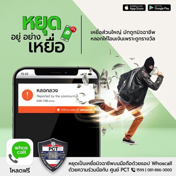 Gogolook ผู้พัฒนาแอปพลิเคชั่นป้องกันการฉ้อโกงชั้นนำระดับโลก ที่รู้จักกันดีในนาม Whoscall แอปพลิเคชั่นระบุตัวตนสายเรียกเข้าที่ไม่รู้จักและป้องกันสแปม ร่วมมือกับศูนย์ PCT หรือ ศูนย์ปราบปรามอาชญากรรมทางเทคโนโลยีสารสนเทศ สำนักงานงานตำรวจแห่งชาติ (ศปอส.ตร.) เพื่อให้ความรู้ถึงพฤติกรรมที่น่าสงสัยและการหลอกลวงออนไลน์ เพื่อให้ประชาชนสามารถรู้เท่าทันการหลอกลวงที่อาจเกิดขึ้นและใช้เครื่องมือต่างๆ ตรวจสอบความถูกต้อง ตั้งแต่ Whoscall เปิดตัวเมื่อ พ.ศ. 2553 Gogolook สามารถปกป้องผู้ใช้โทรศัพท์มือถือมากกว่า 90 ล้าน ผู้ใช้ทั่วโลก โดยศูนย์ปราบปรามอาชญากรรมทางเทคโนโลยีสารสนเทศ เป็นหน่วยงานรัฐแห่งที่ 4 ที่ Gogolook ผสานความร่วมมือ ประกอบด้วย กองตำรวจสืบสวนอาชญากรรมประเทศไต้หวัน หน่วยงานกำกับดูแลด้านการเงินประเทศเกาหลีใต้ และรัฐบาลเมืองฟุกุโอกะ ประเทศญี่ปุ่น