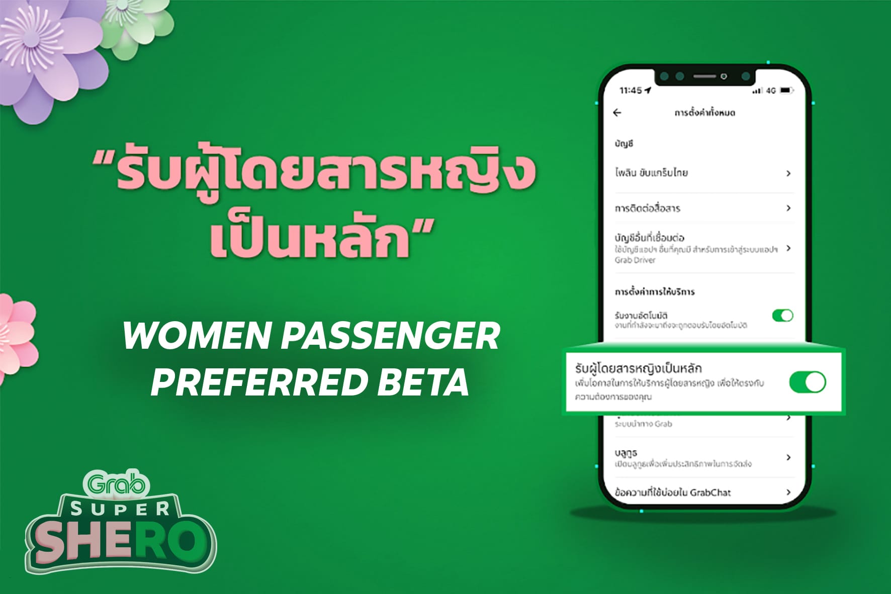 • การสร้างความอุ่นใจในการทำงานให้กับพาร์ทเนอร์คนขับผู้หญิง: นอกจากการพัฒนาฟีเจอร์ด้านความปลอดภัย อาทิ Safety Centre (ศูนย์รวมฟีเจอร์ต่างๆ ที่เกี่ยวข้องกับความปลอดภัยของแกร็บ) และ Trip Monitoring (ระบบตรวจสอบการเดินทางแบบเรียลไทม์ผ่าน GPS และระบบแผนที่อัจฉริยะ) ที่ช่วยลดความกังวลและสร้างความมั่นใจในการให้บริการกับพาร์ทเนอร์คนขับผู้หญิงแล้ว ในปีนี้แกร็บยังได้พัฒนาฟีเจอร์ใหม่ในแอปพลิเคชันของพาร์ทเนอร์คนขับที่ชื่อ “Women Passenger Preferred BETA” เพื่อเพิ่มทางเลือกให้กับพาร์ทเนอร์คนขับผู้หญิงที่อาจมีความกังวลใจในการให้บริการ โดยสามารถเลือกให้บริการกับผู้โดยสารที่เป็นผู้หญิงเป็นหลักได้ ซึ่งจะเริ่มทดลองใช้ในจังหวัดขอนแก่นและโคราช และขยายไปในจังหวัดอื่นๆ ต่อไป นอกจากนี้ แกร็บยังเตรียมสร้างเครือข่ายพาร์ทเนอร์คนขับผู้หญิงภายใต้ชื่อ “Grab SUPER SHERO” ผ่านช่องทางโซเชียลมีเดียและการจัดกิจกรรมออฟไลน์เพื่อเป็นโอกาสให้ผู้หญิงในสายอาชีพเดียวกันได้ทำความรู้จักกัน พร้อมแลกเปลี่ยนความรู้ ตลอดจนประสบการณ์เพื่อเป็นประโยชน์ในการให้บริการและการพัฒนาตัวเอง