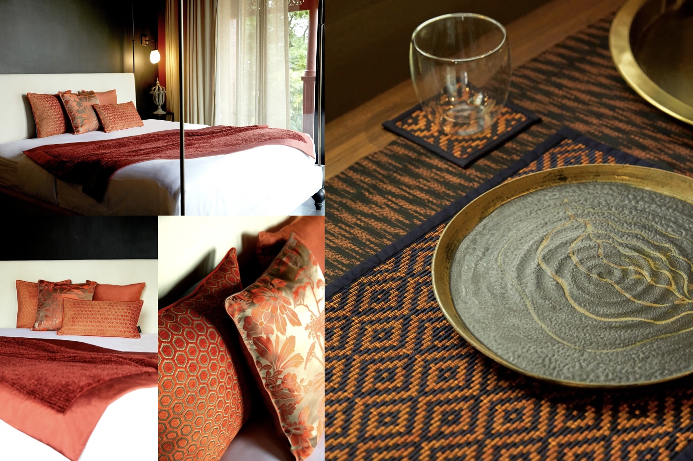 สีแดง ในวัฒนธรรมของเอเชียเป็นสัญลักษณ์ของพลังอำนาจและความกล้าหาญ นอกจากนี้ สีแดงเข้มยังช่วยเพิ่มความน่าค้นหาและกระตุ้นความอยากอาหาร ส่วนสีแดงเอิร์ธโทนอมน้ำตาลยังชวนให้รู้สึกผ่อนคลายมากขึ้นอีกด้วย ลองเพิ่มเลเยอร์การตกแต่งโต๊ะอาหารด้วย Diamond Jacquard Placemat ผ้ารองจานสีแดงอิฐตัดกับสีน้ำเงินกรมท่า หรือใช้ไอเทมปลอกหมอนอิงสีแดง Mandarin Eden Jacquard ที่มอบสัมผัสพรีเมียมของผ้าไหม มาตกแต่งห้องนอนหรือห้องนั่งเล่นให้มีสีสันสะดุดตามากยิ่งขึ้น