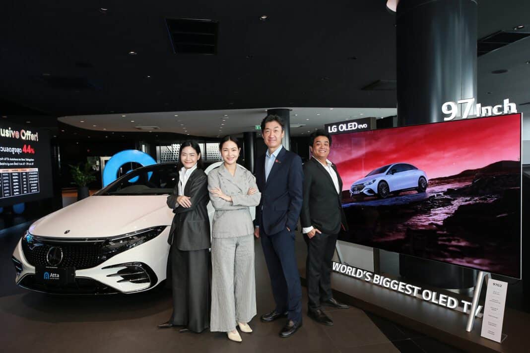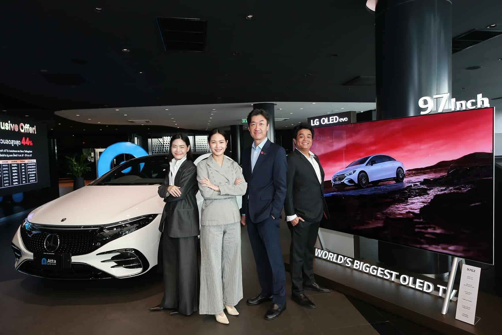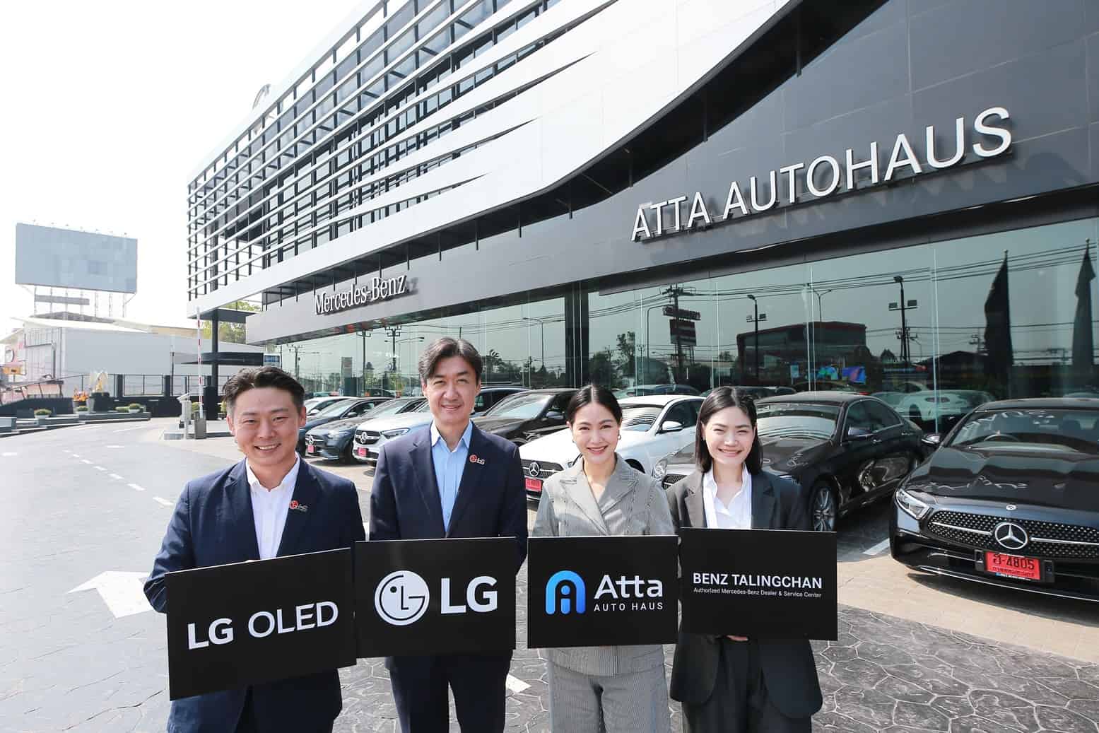 บริษัท แอลจี อีเลคทรอนิคส์ (ประเทศไทย) จำกัด ผู้นำด้านนวัตกรรมโฮมเอนเตอร์เทนเมนต์ระดับพรีเมียม ร่วมกับ แอทต้า ออโต้เฮ้าส์ ดิจิทัลโชว์รูมและศูนย์บริการเมอร์เซเดส–เบนซ์ ที่ครบวงจรแห่งแรกในประเทศไทย ยกระดับประสบการณ์เยี่ยมชมโชว์รูมและศูนย์บริการรถหรูให้แก่ลูกค้า ด้วยทีวีระดับพรีเมียมจากแอลจี ได้แก่ ทีวี LG OLED 97 นิ้ว ซึ่งนับเป็นทีวี OLED จอใหญ่ที่สุดในโลก ทีวี OLED Posé ขนาด 55 นิ้ว และจอไลฟ์สไตล์ LG StanbyME เพื่อการตกแต่งเสริมบรรยากาศหรูหราไฮคลาส พร้อมแสดงข้อมูลต่าง ๆ และงานศิลปะดิจิทัล ยกระดับประสบการณ์รับชมคอนเทนต์ที่สวยงามภายในโชว์รูม นับตั้งแต่เปิดตัวในปี 2563 แอทต้า ออโต้เฮ้าส์ ไม่เพียงส่งมอบประสบการณ์ที่เหนือกว่าโชว์รูมรถหรู แต่ยังมุ่งมั่นที่จะนำเสนอพื้นที่ด้านยานยนต์ดิจิทัลที่ครบวงจรที่สุดแห่งแรกในประเทศไทย โดยแอทต้า ออโต้เฮ้าส์ ผู้จัดจำหน่ายและให้บริการเมอร์เซเดส-เบนซ์ อย่างเป็นทางการในประเทศไทยยังคงมองหาความร่วมมือที่จะนำไปสู่การส่งมอบการให้บริการอันเป็นเลิศอย่างต่อเนื่อง โดยให้ความสำคัญกับการสร้างบรรยากาศที่เหนือกว่าให้แก่ลูกค้าและผู้มาเยี่ยมชมโชว์รูม ดังเช่นในความร่วมมือครั้งนี้ที่มุ่งเน้นการเสริมประสบการณ์รับชมการแสดงผลภาพที่ดีเยี่ยม ผ่านจอทีวีขนาดใหญ่และมีคุณภาพสูง รวมถึงจอไลฟ์สไตล์ที่ทันสมัยจากแอลจี