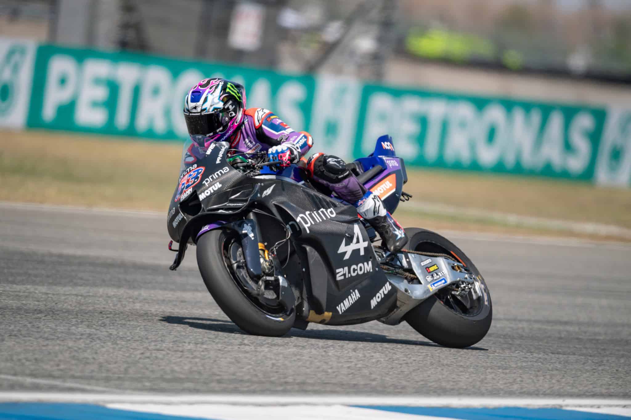 ด้าน ฟาบิโอ กวาร์ตาราโร แชมป์โลกปี 2021 หมายเลข 20 ทำงานอย่างหนักกับแพ็กเกจใหม่ ก่อนจบวันแรกในอันดับ 18 ด้วยเวลาต่อรอบ 1 นาที 30.507 วินาที ตามหัวแถว 1.245 วินาที ขณะที่ทีมเมทชาวสแปนิช อเล็กซ์ รินส์ หมายเลข 42 รั้งอันดับ 19 ตามหลัง 1.250 วินาที