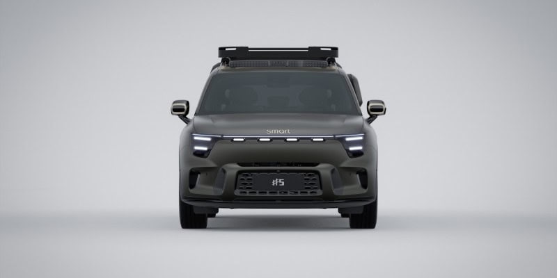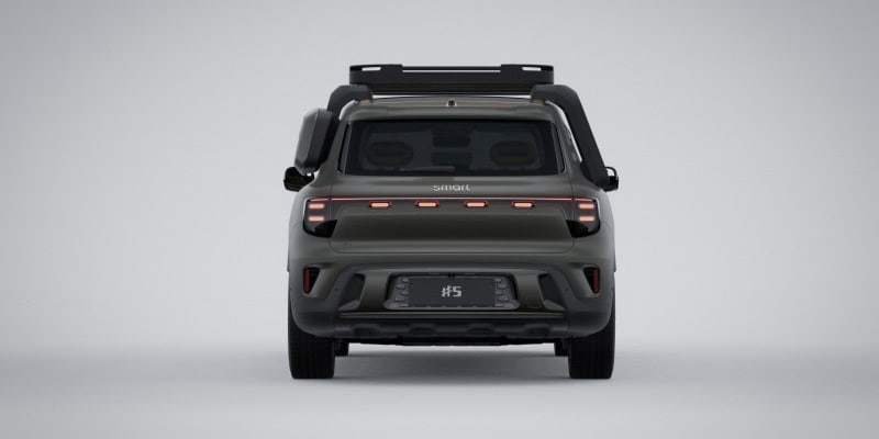 smart#5 ออกแบบโดย Mercedes-Benz จึงยังคงเอกลักษณ์ของ smart เอาไว้ทั้งหลังคากระจก Panoramic Halo Roof, กระจกไร้กรอบ และระยะ overhang หน้าหลังสั้น ส่วนไฟหน้าและไฟท้ายมาในโคมทรงรี พร้อมติดโลโก้บนเสาหลังคา D-Pillar ล้อยังมีโลโก้ smart แบบลอยซึ่งจะไม่หมุนตามล้อ ช่วยเพิ่มภาพลักษณ์พรีเมี่ยม สำหรับผู้ที่ชอบการผจญภัยสามารถติดตั้งแพคเกจ Adventurers’ Collection เพิ่มได้ โดยจะเสริมกันกระแทกใต้ท้อง, ราวหลังคา, บันไดข้าง, บันไดปีนขึ้นหลังคารถ และที่เก็บของข้างเบาะมาให้