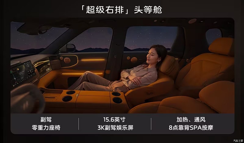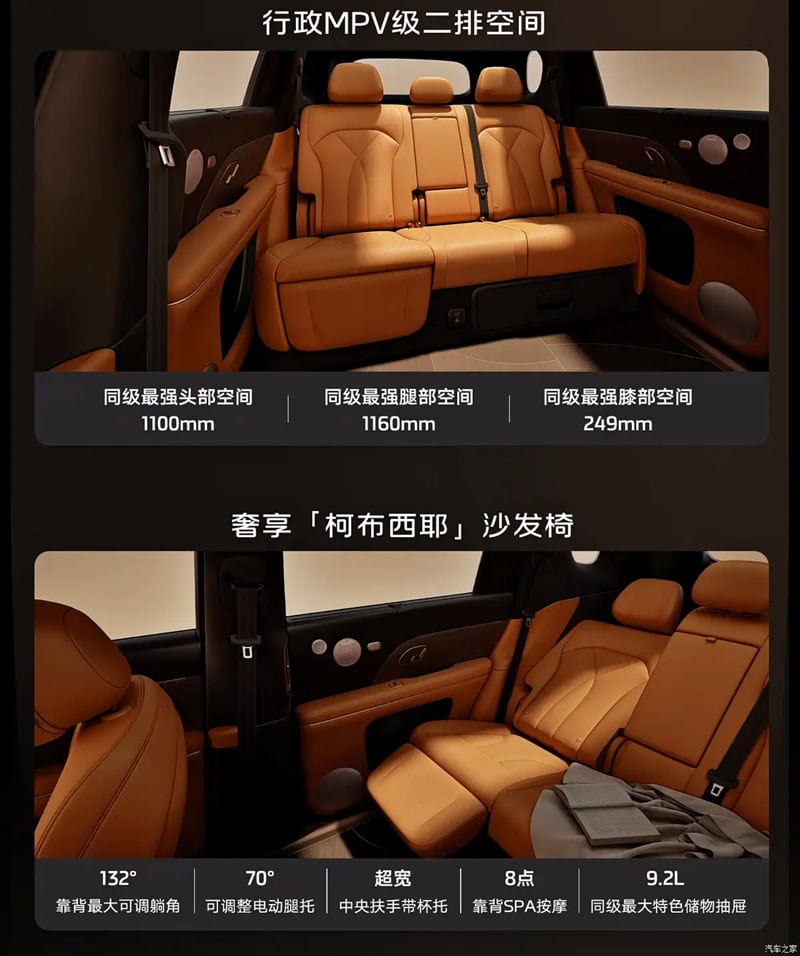 ห้องโดยสารของ IM Motors LS8 มีให้เลือกทั้งรุ่น 5 และ 6 ที่นั่ง โดยอย่างหลังจะมีเบาะแถวสองแบบ Captain’s Seat มาพร้อมระบบเป่าลมอุ่น – เย็น, ระบบนวด ปรับที่วางแขนด้วยไฟฟ้า ส่วนเบาะแถว 3 พับด้วยไฟฟ้าเช่นกัน ทั้งยังมีตู้ควบคุมอุณหภูมิอุ่น – เย็นขนาด 12.3 ลิตร ไฟ Ambient ปรับได้ 256 สี และมีระบออุ่นพื้นเพื่อให้ห้องโดยสารอุ่นไวขึ้นในสภาวะหนาวเย็น เงียบด้วยกระจกกันเสียงสองชั้นและระบบตัดเสียงรบกวน ดีไซน์ภายในส่วนหน้าออกแบบให้มีลักษณะโอบล้อมผู้โดยสาร พร้อมจอแสดงผลขนาด 27.1 และ 15.6 นิ้ว