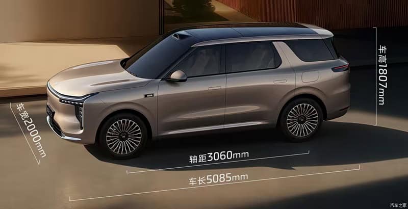 SAIC เปิดตัวผลิตภัณฑ์รุ่นที่ 6 ภายใต้แบรนด์ IM Motors ในชื่อ LS8 โดยสร้างขึ้นบนงานวิศวกรรมแรงดันไฟฟ้า 800 โวลต์ จัดอยู่ในพิกัด Mid-to-Large SUV วางตำแหน่งรองจาก LS9 ขับเคลื่อนด้วยขุมพลัง EREV ส่วนสีตัวถังมีให้เลือก 5 สี ประกอบด้วย สีเทา Pamir Grey, สีดำ Olympus Black, สีเงิน Chogori Silver, สีขาว Alps White และ สีเขียว Bled Green ในส่วนของมิติตัวถัง มีรายละเอียดดังนี้