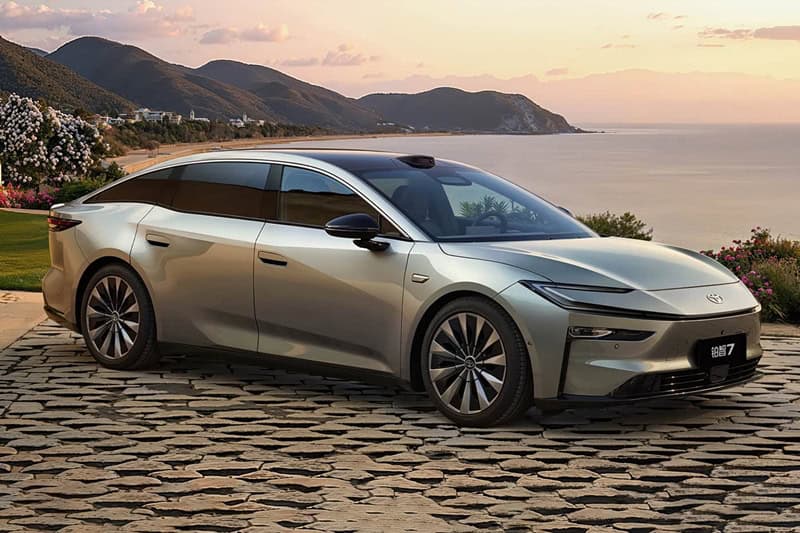 Toyota bZ7 เป็นความร่วมมือของ ญี่ปุ่น – จีน อย่าง Toyota – GAC ซึ่งมาในตัวถัง Sedan ขนาดใหญ่ ด้านหน้าคงเอกลักษณ์ยุคใหม่ของค่าย กับไฟหน้าแบบ Hammerhead ส่วนแนวหลังคาหลังลาดลงคล้าย Fastback แต่ยังไม่แน่ชัดว่าสามารถยกฝาท้ายเปิดได้ทั้งบาน พร้อมกระจกบานหลังหรือไม่ ล้อมีขนาด 21 นิ้ว ลายก้านตรงซี่ถี่ ยางมีขนาด 255/40 R21 บนหลังคายังมีเซนเซอร์ LiDAR