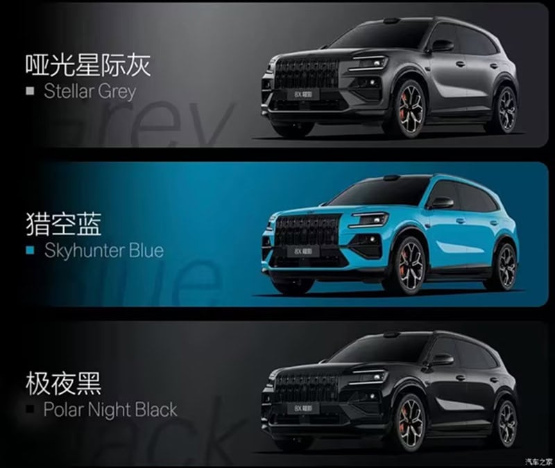 Geely เปิดตัว Zeekr 8X อย่างเป็นทางการที่ประเทศจีนแล้ว เมื่อวันที่ 17 เมษายน 2026 โดย Geely หมายมั่นให้ SUV รุ่นนี้ช่วยเร่งการบุกตลาดโลก โดยจะเริ่มส่งออกไปทำตลาดในประเทศอื่นอย่างไวสุดในไตรมาสที่สาม ส่วนขุมพลังเป็น PHEV ในรุ่นแรงสุดมาพร้อมกับมอเตอร์ไฟฟ้า 3 ตัว กำลังรวมสูงสุดแตะระดับ 1,400 แรงม้า ด้านสีตัวถังมีทั้งสีเทา Stellar Grey, สีฟ้า Skyhunter Blue และ สีดำ Polar Night Black ในส่วนของมิติตัวถัง มีรายละเอียดดังนี้