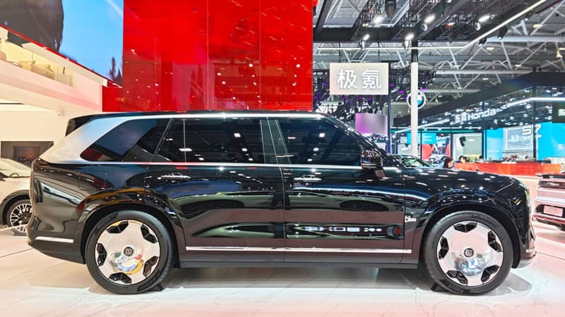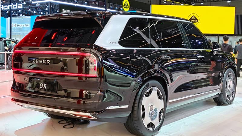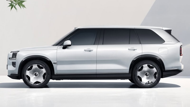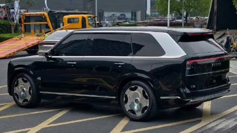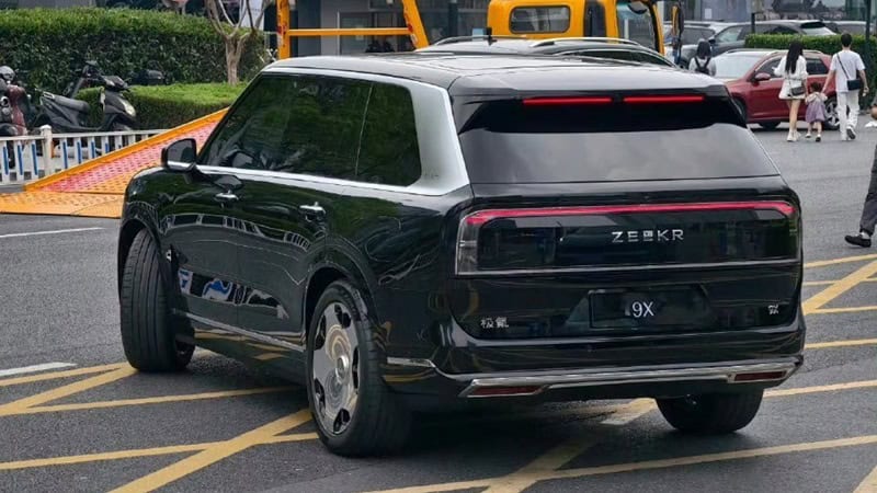 ภาพชุดล่าสุดของ Zeekr 9X มาในตัวถังสีขาว Polar Day White ซึ่งแตกต่างจากของเดิมที่มาในสีดำ ด้านหน้ามาพร้อมกับกระจังหน้าโครเมี่ยมแนวตั้งขนาดใหญ่ เชื่อมต่อกับช่องดักลมกันชนหน้า ส่วนไฟหน้ามาในรูปทรงตัว C แบบแยกสองชั้น เสาหลังคา A-Pillar และชายล่างตัวถังตัดสีดำ แต่เสาหลังคา D-Pillar รวมถึงกรอบกระจกหน้าต่างทั้งหมดมาในสีเงิน ด้านท้ายมีดีไซน์เรียบง่ายกับไฟท้ายแถบ LED สองชั้นเชื่อมต่อกันเป็นรูปวงรี และมีการตกแต่งชายล่างกันชนหลังด้วยแถบโครเมี่ยม