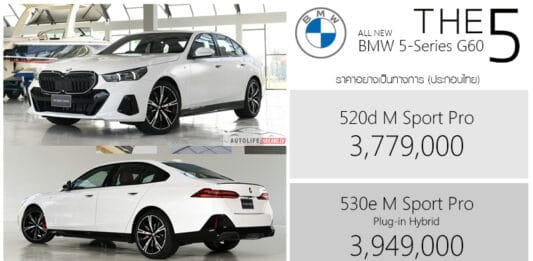 ราคาอย่างเป็นทางการ BMW 520d / 530e M Sport Pro (G60) : 3,779,000 – 3,949000 บาท (ประกอบไทย)
