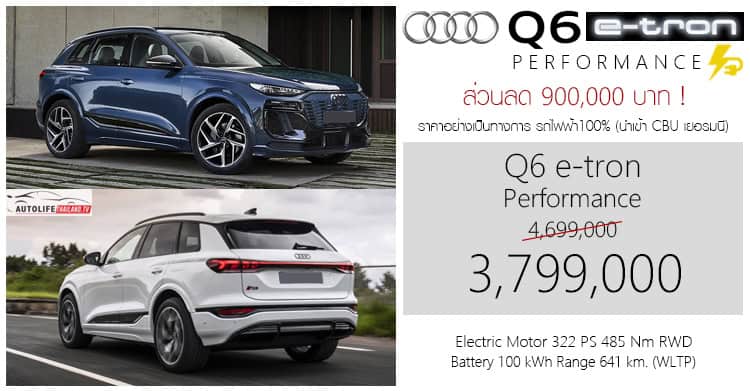 * ส่วนลด ลดราคา 900,000 บาท ในรุ่น Q6 e-tron จาก 4,699,000 เหลือ 3,799,000 บาท ราคาพิเศษ วันนี้ – 31 สิงหาคม 2025