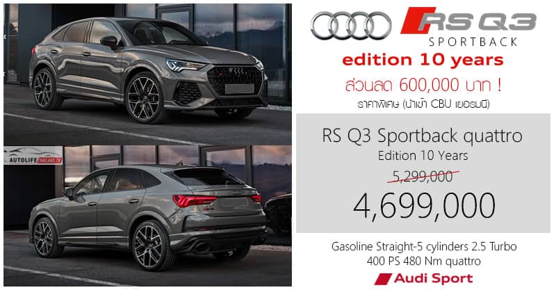 - รุ่นพิเศษ ฉลองครบรอบ 10 ปี ของรหัส RS Q3 ครั้งแรกที่เปิดตัวเมื่อปี 2013