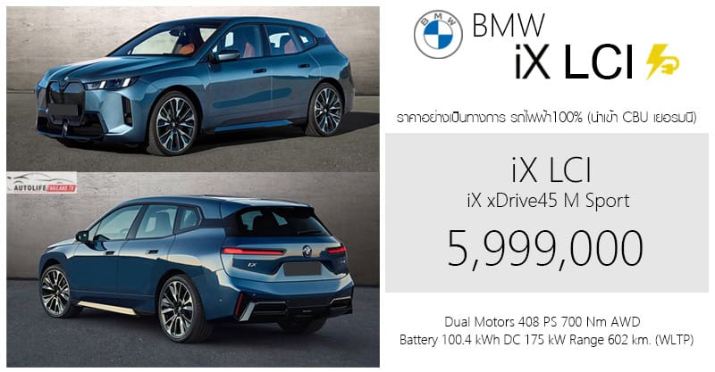 BMW iX LCI ราคาอย่างเป็นทางการ (นำเข้า CBU เยอรมนี)