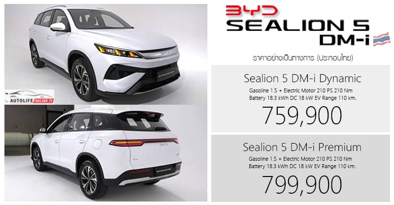 BYD Sealion 5 DM-i ราคาอย่างเป็นทางการ (ประกอบไทย)