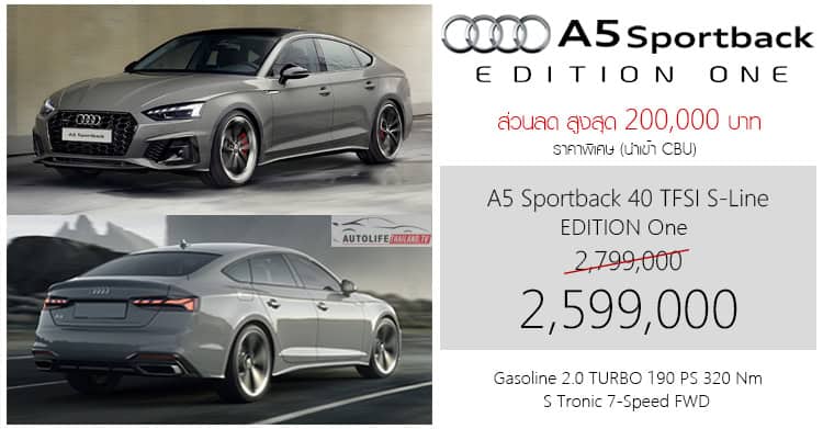 ส่วนลด 200,000 ! ราคาพิเศษ Audi A5 Sportback 40 TFSI EDITION One : 2,599,000 บาท (นำเข้า CBU)