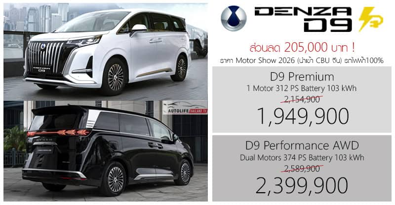 ส่วนลด 205,000 ! DENZA D9 รถตู้ไฟฟ้า100% ราคาอย่างเป็นทางการ : 1,949,900 – 2,399,900 บาท (นำเข้า CBU) | Motor Show 2026