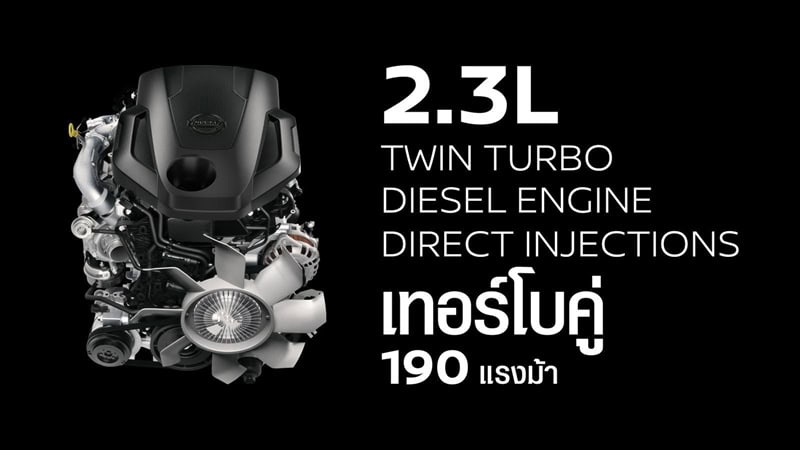 *** Nissan แบ่งเกรดเครื่องยนต์ ตามระบบเกียร์ โดยตัวยกสูง และ ขับ4 ทุกรุ่น ได้เครื่องยนต์ใหม่ ดีเซล 2.3 ลิตร