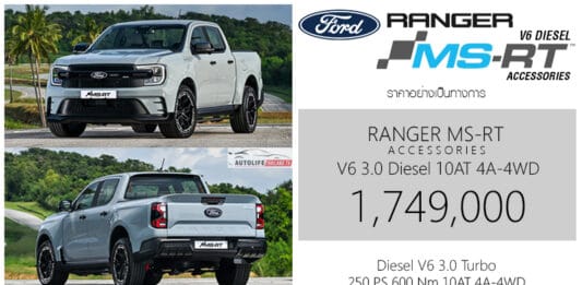 Ford Ranger MS-RT ราคาอย่างเป็นทางการ Ranger MS-RT 1,749,000 บาท Ford ประเทศไทย จับมือกับ RMA Automotive เปิดตัวกระบะตัวเตี้ย สมรรถนะสูง Ranger MS-RT Accessories ครั้งแรกในประเทศไทย มาพร้อมการรับประกันคุณภาพตัวรถ ดังนี้ รับประกันคุณภาพตัวรถ Warranty นาน 5 ปี หรือ 150,000 กิโลเมตร Engine เครื่องยนต์ Diesel V6 Power Stroke เครื่องยนต์ดีเซล V6 TDI สูบ ขนาด 3.0 ลิตร 2,993 ซีซี. พ่วงเทอร์โบ พละกำลังสูงสุด 250 แรงม้า ที่ 3,250 รอบ/นาที แรงบิดสูงสุด 600 นิวตันเมตร ที่ … Continue reading ราคาอย่างเป็นทางการ Ford Ranger MS-RT : 1,749,000 บาท | ดีเซล V6 3.0 เทอร์โบ 250 แรงม้า ตัวเตี้ย Widebody