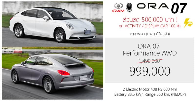 * รถ Activity Car / Display ส่วนลด ลดราคา 500,000 บาท ในรุ่น 07 Performance จาก 1,499,000 เหลือ 999,000 บาท จำนวนจำกัด 100 คัน