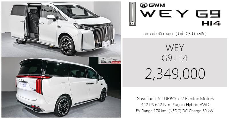 GWM WEY G9 Hi4 เวอร์ชั่นไทย มี 1 รุ่นย่อย (นำเข้า CBU มาเลเซีย)