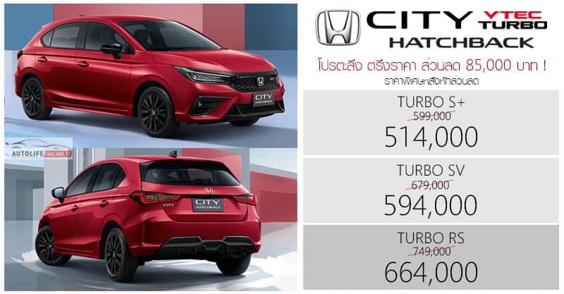 - ส่วนลด 85,000 บาท ใน Honda City TURBO ทุกรุ่นย่อย