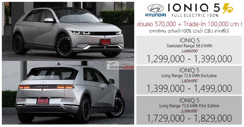 • IONIQ 5 First Edition Long Range  2,399,000  1,729,000 – 1,829,000 บาท*