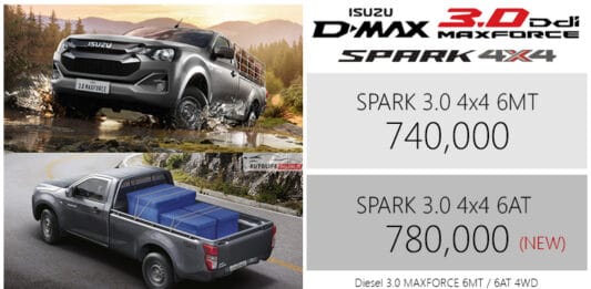 Isuzu D-Max Spark 4×4 ราคาอย่างเป็นทางการ D-Max Spark 3.0 S 6MT 4×4 740,000 บาท D-Max Spark 3.0 S 6AT 4×4 780,000 บาท (NEW Variants รุ่นย่อยใหม่) มาพร้อมการรับประกันคุณภาพตัวรถ Warranty นาน 3 ปี หรือ 100,000 กิโลเมตร ความเปลี่ยนแปลงของ Isuzu D-Max Spark 4×4 3.0 MAXFORCE เครื่องยนต์ 3.0 MAXFORCE เปลี่ยน กล่องควบคุม ECM ใหม่ แบบ Multi-Core นอกนั้นเหมือนเดิม รหัสเครื่องยนต์เหมือนเดิม 4JJ3-TCX แค่เปลี่ยนชื่อจาก BluePower เป็น MAXFORCE … Continue reading ราคาอย่างเป็นทางการ Isuzu D-Max Spark 3.0 4×4 6MT / 6AT : 740,000 – 780,000 บาท | ตอนเดียว ขับ4