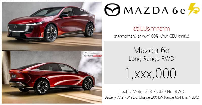 - Mazda 6e 1,xxx,000 บาท ยังไม่มีการประกาศราคา