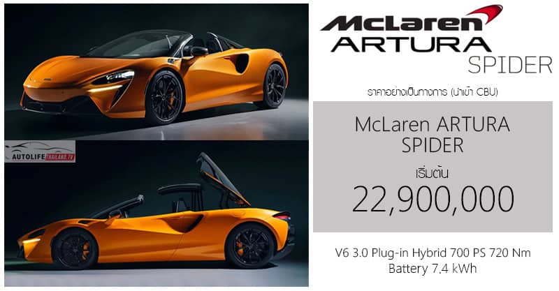 - McLaren Artura Spider ราคาเริ่มต้น 22,900,000 บาท