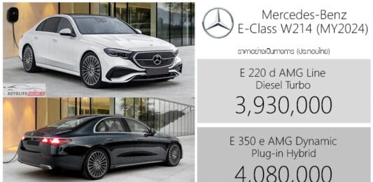 Mercedes-Benz E-Class (W214) MY2024 ราคาอย่างเป็นทางการ (ประกอบไทย) E 220 d AMG Line 3,930,000 บาท E 350 e AMG Dynamic 4,080,000 บาท มาพร้อมการรับประกัน Warranty ดังนี้ มาพร้อมการรับประกันคุณภาพตัวรถ Warranty นาน 3 ปี ไม่จำกัดระยะทาง รับประกันแบตเตอรี่ High-Voltage นาน 10 ปี ไม่จำกัดระยะทาง (รุ่น E 350 e) สิ่งที่เปลี่ยนแปลงใน E 220 d / E 350 e (MY2024) เมื่อเทียบกับรุ่นเดิม มีดังนี้ E 220 d AMG Line … Continue reading ราคาอย่างเป็นทางการ Mercedes-Benz E220d / E350e (W214 : MY2024) : 3,930,000 – 4,080,000 บาท (ประกอบไทย) | ถูกลง 170,000 เพิ่ม-ลด Option