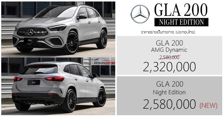 Mercedes-Benz GLA 200 Night Edition ราคาอย่างเป็นทางการ : 2,580,000 บาท | ล้อ 20 นิ้ว หลังคากระจก Panoramic