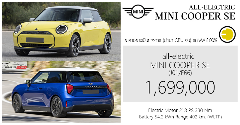 รายละเอียด Specification ของ all-electric MINI Cooper SE รถไฟฟ้า100% (J01/F66) เวอร์ชั่นไทย