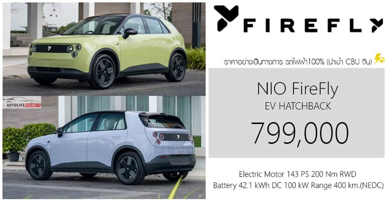 NIO FireFly รถไฟฟ้า100% ราคาอย่างเป็นทางการ : 799,000 บาท | น้องหิ่งห้อย EV Hatchback 5 ประตู รองรับ SWAP Battery