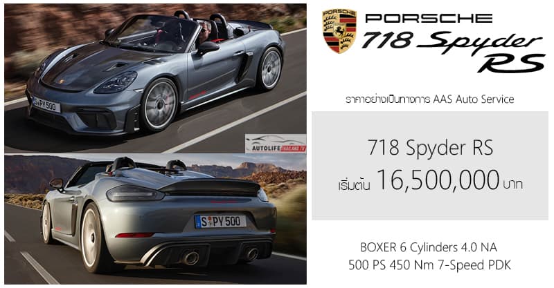 - Porsche 718 Spyder RS (982) เริ่มต้น 16,500,000 บาท