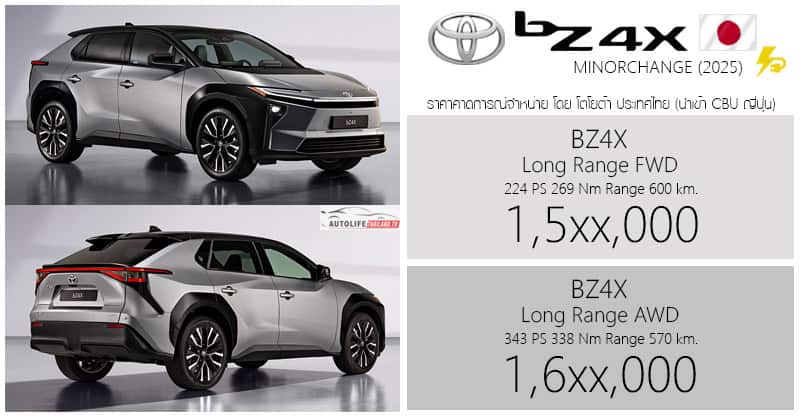 Toyota BZ4X ราคาคาดการณ์จำหน่าย โดย โตโยต้า ประเทศไทย (นำเข้า CBU ญี่ปุ่น)