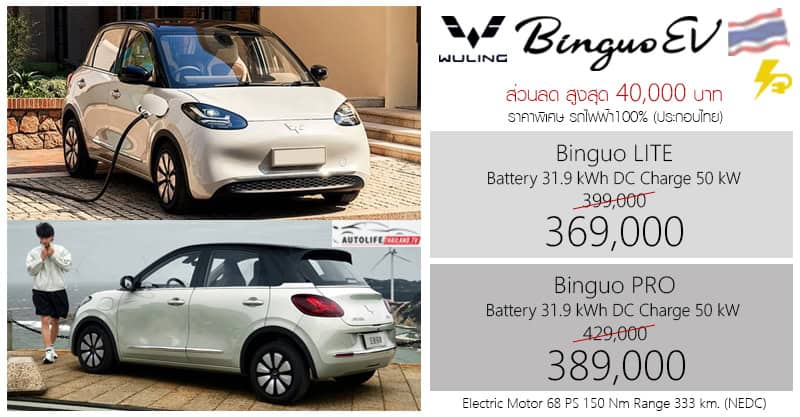 ส่วนลด 40,000 ! Wuling Binguo EV MY25 รถไฟฟ้า100% ราคาอย่างเป็นทางการ 369,000 – 389,000 บาท (ประกอบไทย)