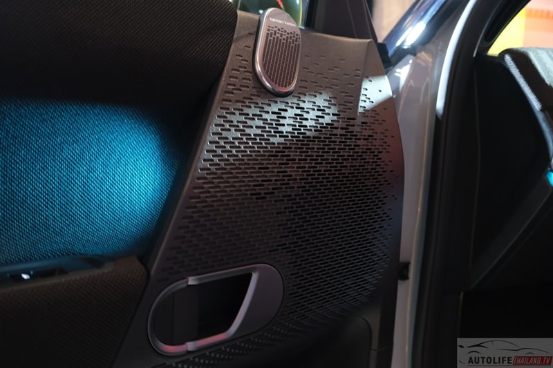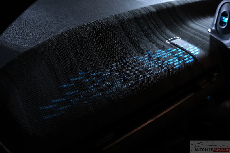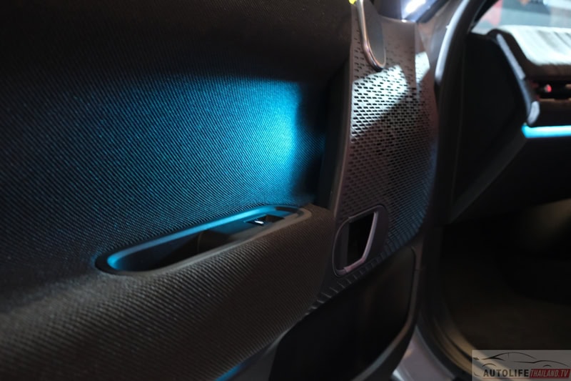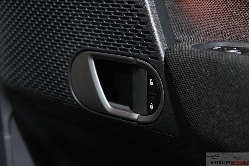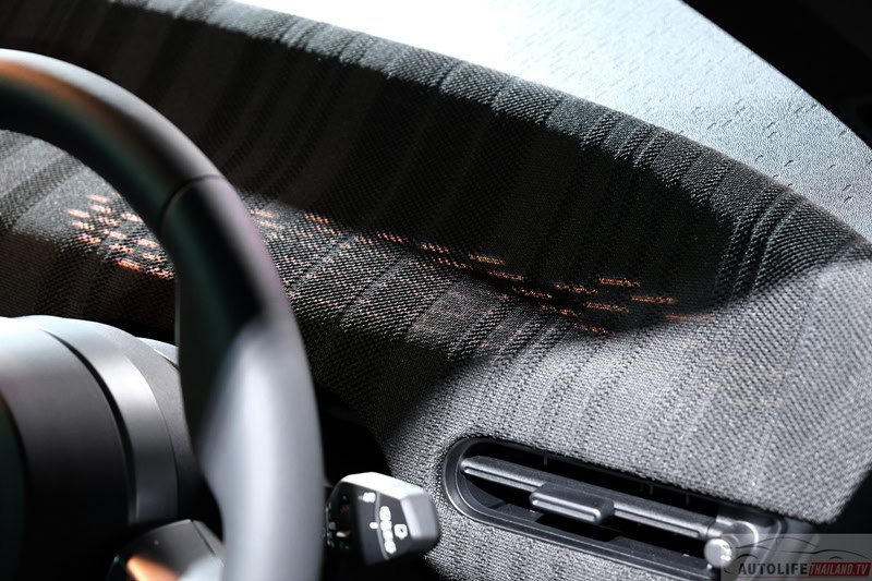 - แดชบอร์ดหน้า และ แผงประตู พื้นผิวถัก สีโทนดำตัดเทา