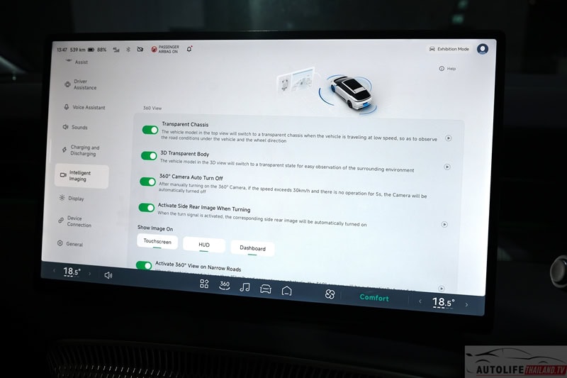- ระบบแสดงข้อมูลการขับขี่ พร้อม แสดงภาพจากกล้องบนกระจกหน้า (Head-up Display) ขนาด 21 นิ้ว