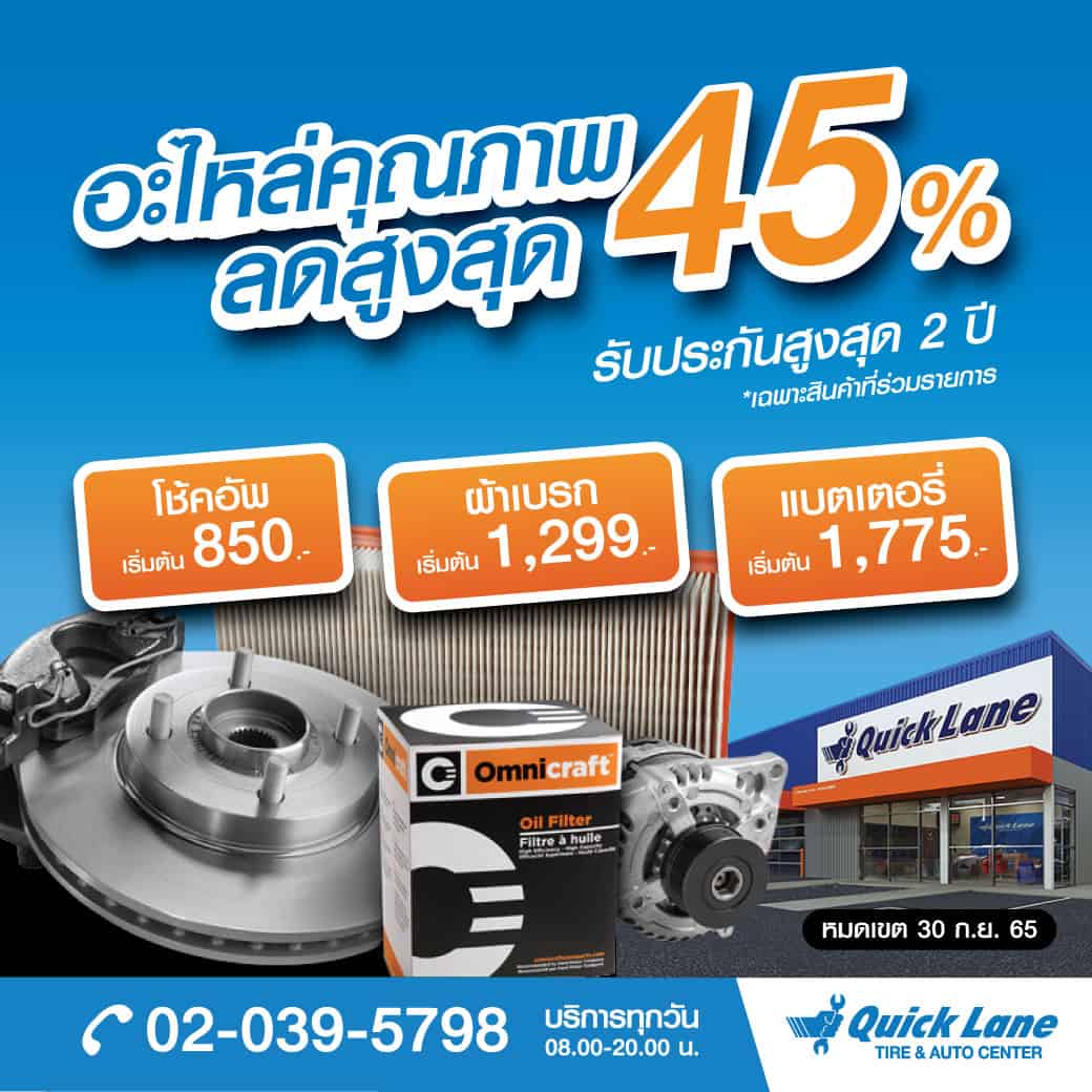 พิเศษตั้งแต่วันนี้ถึง 30 กันยายน 2565 ควิกเลนยังสร้างเสริมความอุ่นใจให้ลูกค้าเตรียมรถให้พร้อมรับมือช่วงมรสุม ด้วยโปรโมชั่นอะไหล่เปี่ยมคุณภาพแบรนด์ออมนิคราฟท์ (Omnicraft) ที่มากับการรับประกันที่ยาวนาน สำหรับรถหลากรุ่น หลายยี่ห้อ ได้แก่