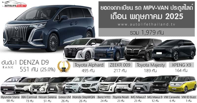 ยอดจดทะเบียน รถ MPV – VAN ประตูสไลด์ เดือน พฤษภาคม 2025 (รวมทุกขุมพลัง ไฟฟ้า100% / สันดาป)