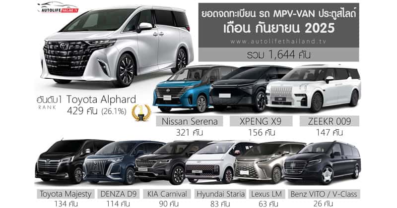ยอดจดทะเบียน รถ MPV – VAN ประตูสไลด์ เดือน กันยายน 2025 รวม 1,644 คัน | Toyota Alphard ครองแชมป์