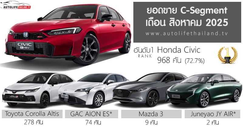 ยอดขาย C-Segment เดือน กรกฎาคม 2025 รวม 1,195 คัน : Honda Civic ครองแชมป์